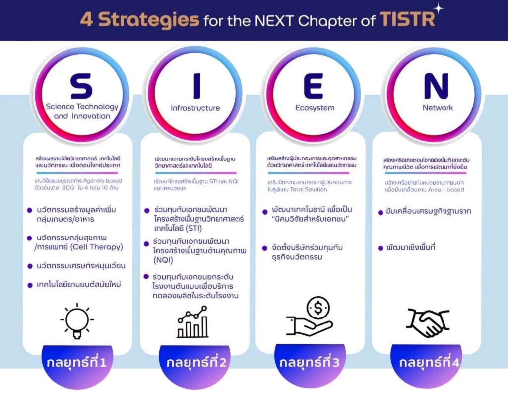 To promote science, technology, and innovation for national development and initiate an Agenda-based model with 4 BCG (Bio-Circular-Green) and 10 Targeted S-curve industries.